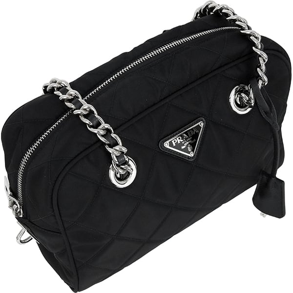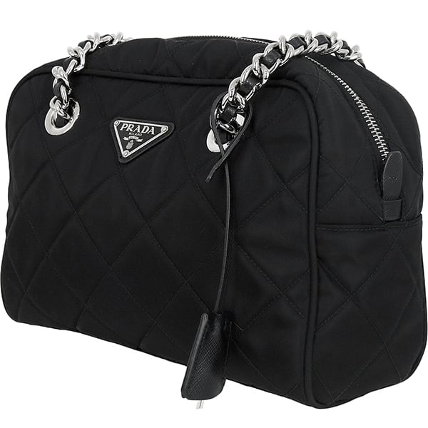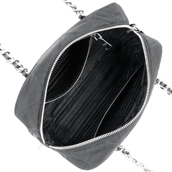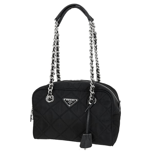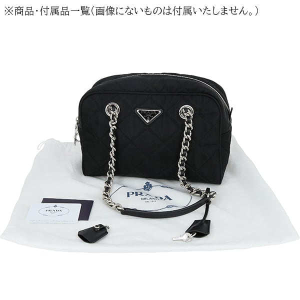 Used PRADA プラダ チェーンミニボストン 1BB072 ナイロン サフィアーノ ブラック キルティング 超美品