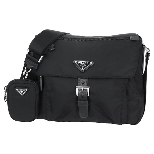 Used PRADA プラダ Re-Nylon ポーチ付 ショルダーバッグ 1BD994 サフィアーノ ブラック 超美品