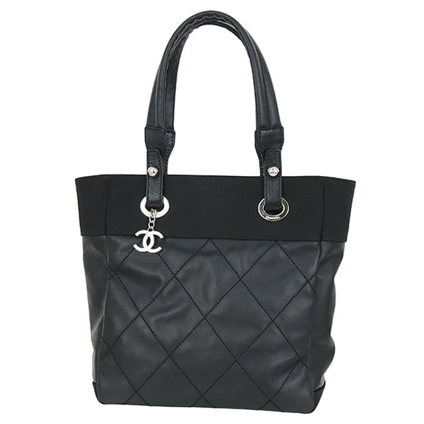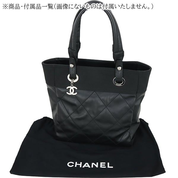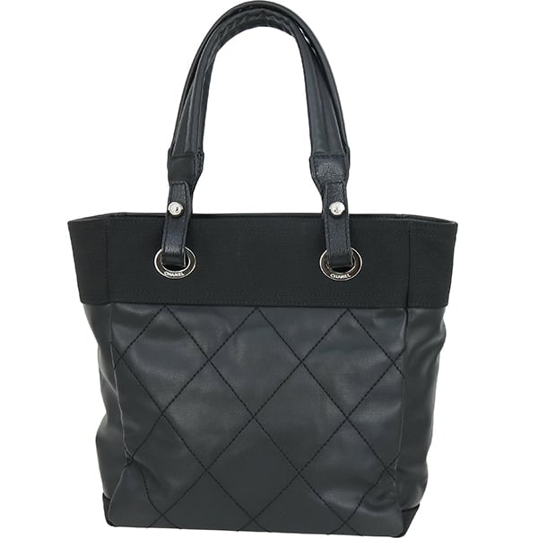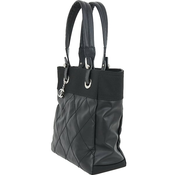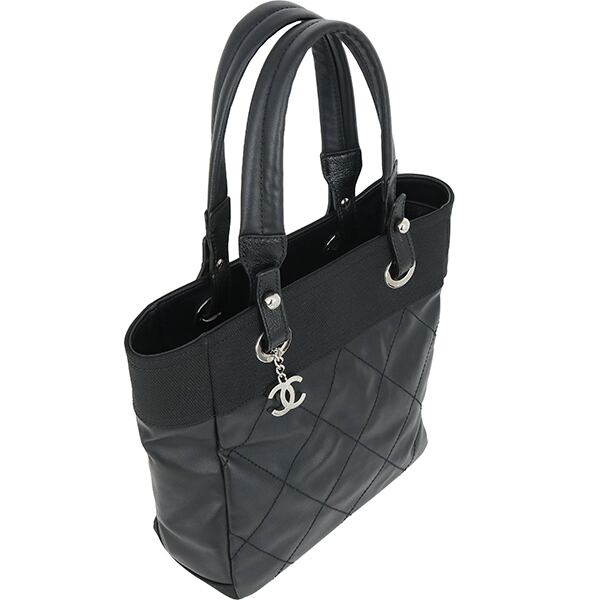 Used CHANEL シャネル パリビアリッツ トート PM A34208 ワイルドステッチ ブラック ナイロン レザー 中古美品