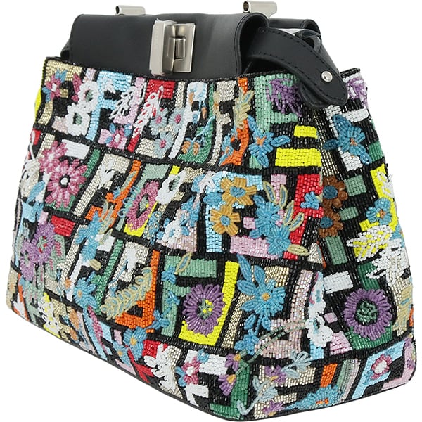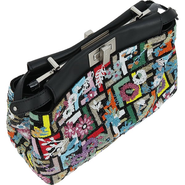 フェンディの定番人気アイコンバッグ【ピーカブー ミニアイコニック】です。外側にはビーズ刺繍が施され、マルチカラーが華やかなアクセントに。ハンドルにはシアリング(ムートン)を使用し、細部まで特別感あふれるデザインです。2層のコンパートメントと取り外し可能なショルダーストラップ付きの2WAY仕様。予備ビーズなど付属品も揃った、超美品SAランクのラグジュアリーな逸品です。