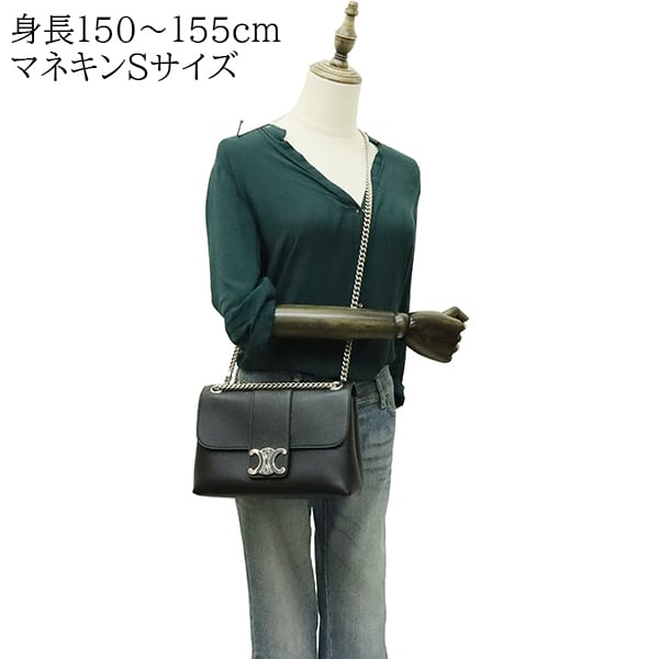 セリーヌの「トムボーイ」コレクションで発表された新作バッグ【ヴィクトワール ミディアム】です。シボ感のある柔らかなサプルグレインドカーフスキンに、アイコニックな「トリオンフ」モチーフを配置。構築的なフォルムとレザーのしなやかさが融合したモダンなデザインです。スライド式のチェーンストラップにより、ロングでクロスボディ(斜め掛け)、ショートでショルダー(肩掛け)として、シーンに合わせてスタイルを変えられる実用性も魅力。長財布も収納可能なサイズ感で、デイリーからイブニングまで幅広く活躍する超美品SAランクの逸品です。