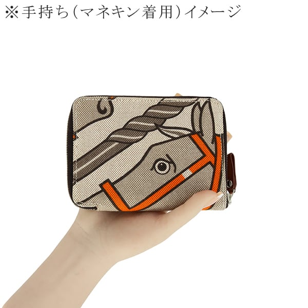 Used HERMES エルメス スティープル PM ホース柄 トワルアッシュ ヴォーバレニア 財布 超美品