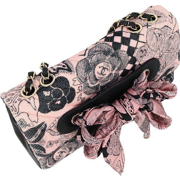 フロントのシルクリボンで象られたカメリアモチーフが象徴的な、ガーリーで可愛らしいシャネル【カメリアチェーンショルダーバッグ】です。珍しいコーデュロイ素材を採用し、ラムスキンと組み合わせることで上質なカジュアルさを演出。ダブルチェーンは、シングルにして斜め掛け、ダブルにして肩掛けと2WAYでお楽しみいただけます。長財布も収納可能で、デイリーからパーティーまで幅広くご使用いただける中古美品Aランクの逸品です。