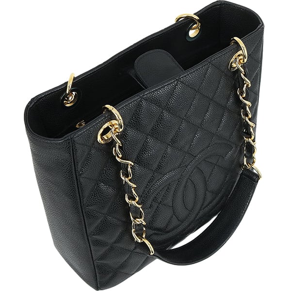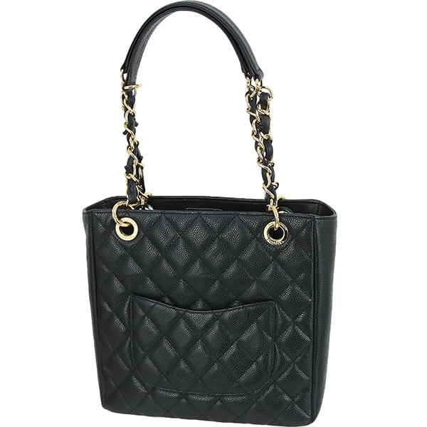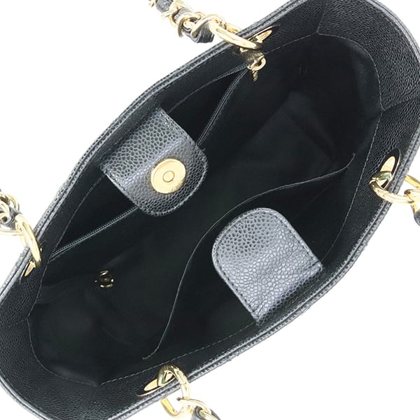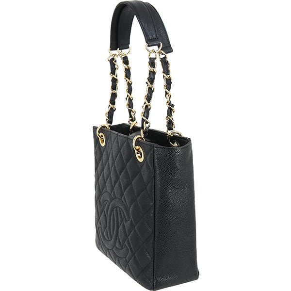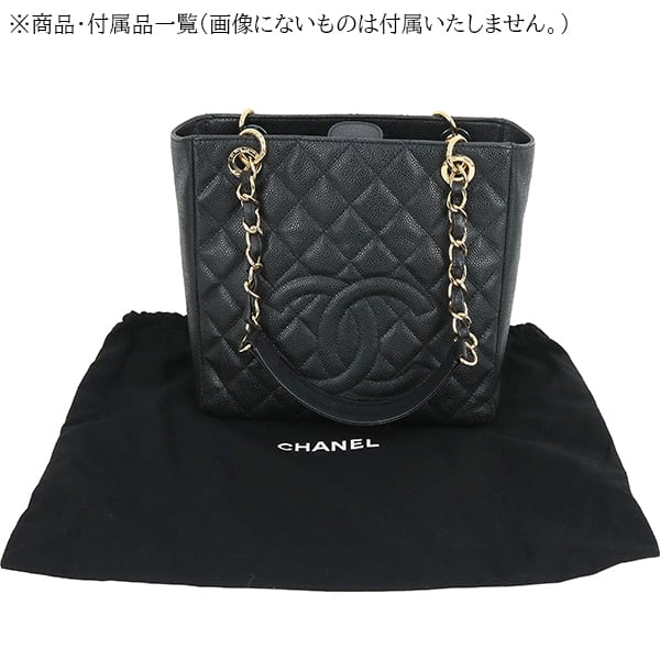 Used CHANEL シャネル トートバッグ PST チェーントート マトラッセ キャビアスキン ブラック ゴールド金具 A50994 超美品