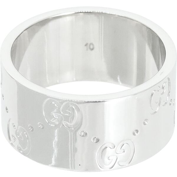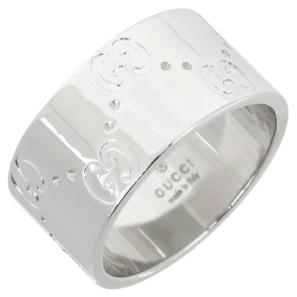 Used GUCCI グッチ アイコン ワイド リング GG K18WG 10号 8.1g 超美品