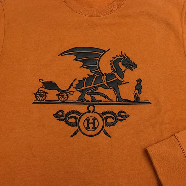 Used HERMES エルメス スウェット トレーナー Ex-Libris Dragon ラムスキンパッチ Mサイズ 超美品