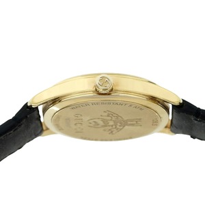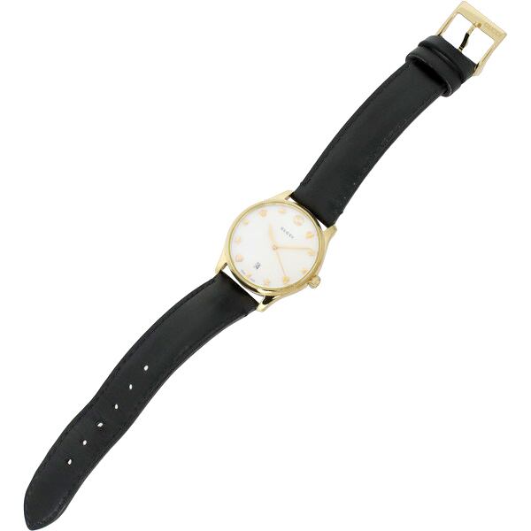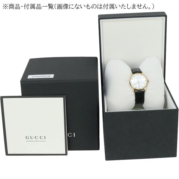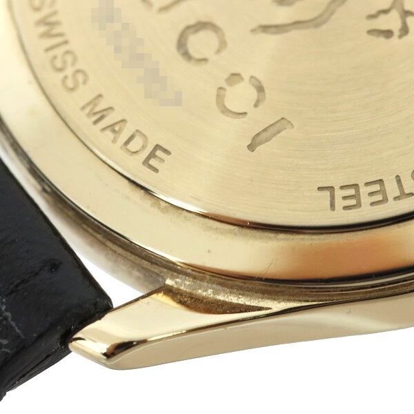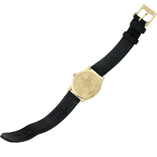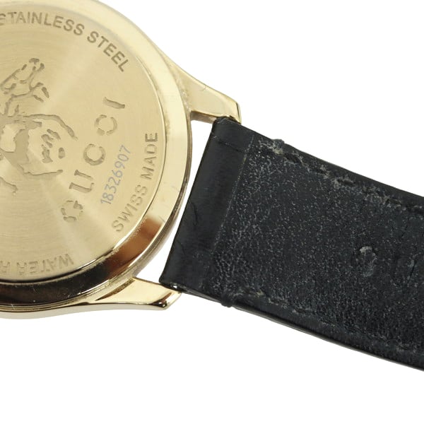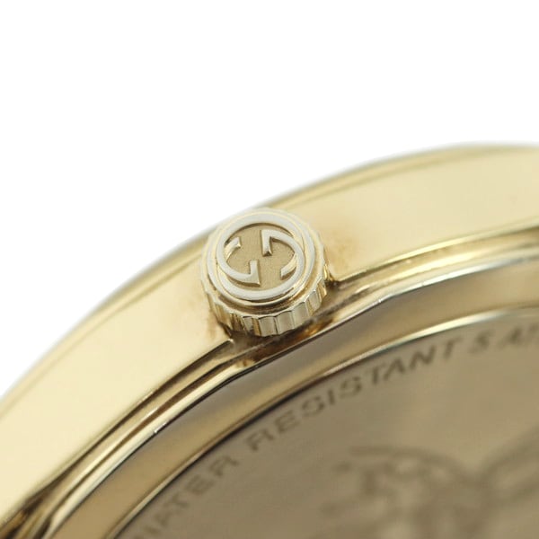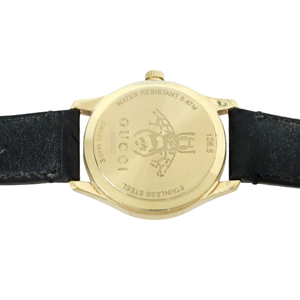 Used GUCCI グッチ Gタイムレス 126.5 ゴールド クォーツ 黒革 中古美品