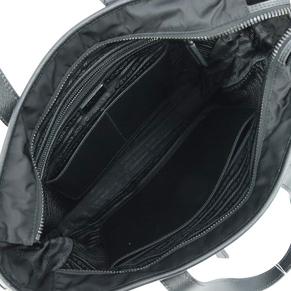 プラダが誇る革新素材「Re-Nylon」に、伝統のサフィアーノレザーを組み合わせたコンテンポラリーな2WAYトートバッグです。前面に3つ、背面に1つのファスナーポケットを備えた高い機能性が特徴で、小物をスマートに整理できます。A4サイズやタブレットも収まる収納力がありながら、リナイロン特有の軽やかさとエレガントなディテールが調和した逸品。定価42万円を超える現行モデルを、新品同様のSAランクでお届けいたします。