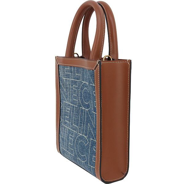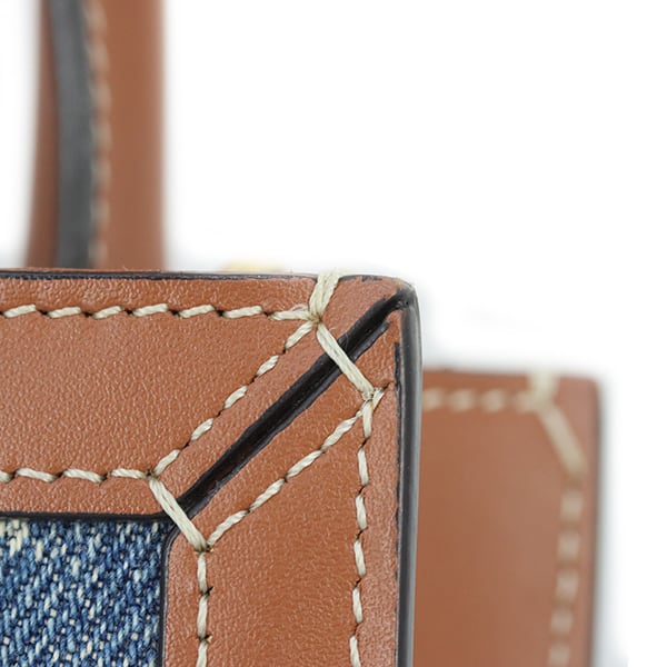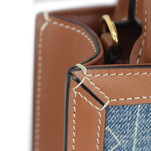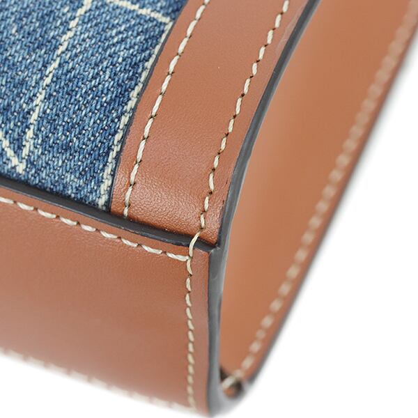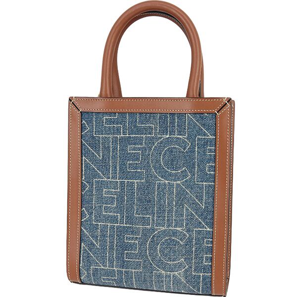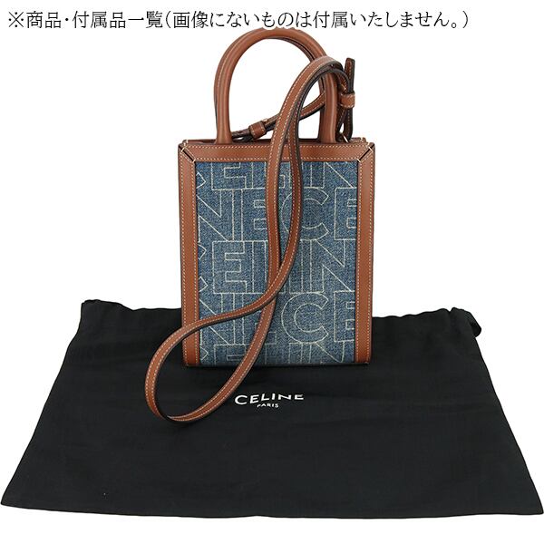 Used CELINE セリーヌ ショルダーバッグ ミニ バーティカル カバ デニム カーフレザー ネイビー タン 中古 美品