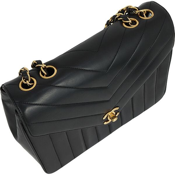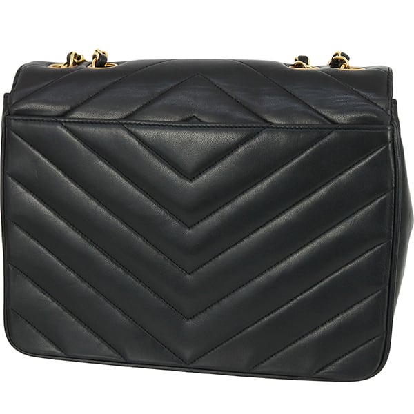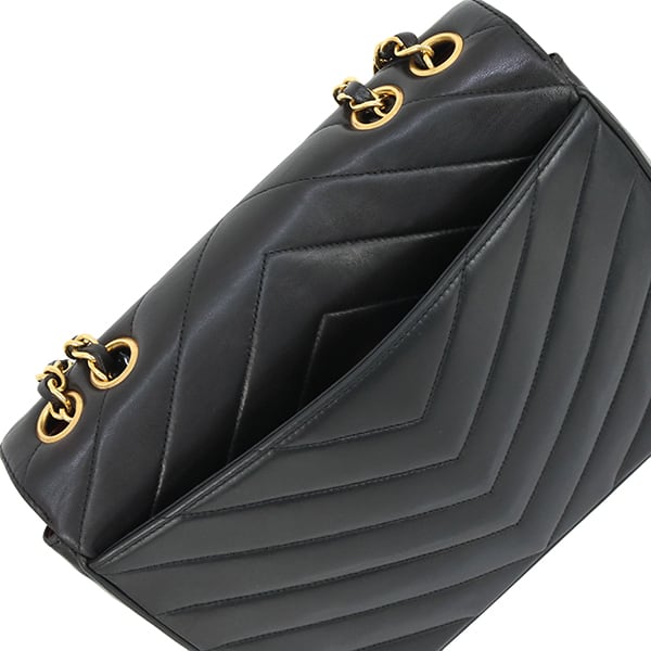 Vintage CHANEL シャネル マドモアゼル Vステッチ チェーンショルダー 23cm 中古美品