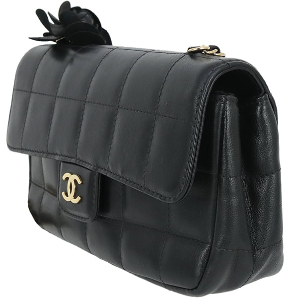 Vintage CHANEL シャネル チョコバー カメリア ミニチェーンバッグ 黒 中古