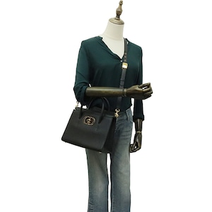 機能面も充実しており、内側は中央のファスナーポケットで仕切られた2つのコンパートメント仕様。荷物をスマートに整理でき、二つ折り財布やスマートフォンの持ち運びに最適なサイズ感です。付属のショルダーストラップにより、ハンドバッグとしてはもちろん、ショルダーやクロスボディとしても活躍。デイリーからフォーマルまで、装いをクラスアップさせてくれる特別なバッグです。
