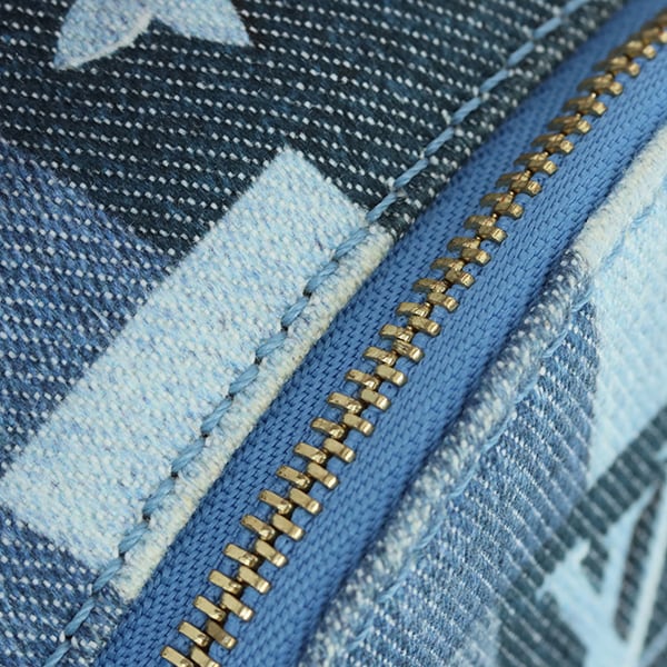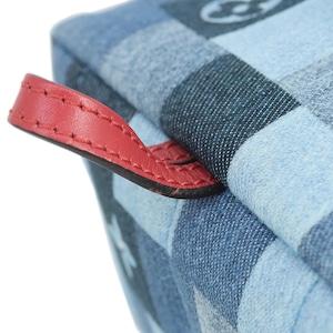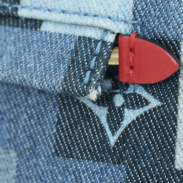 異なるトーンのモノグラム・デニムを組み合わせたパッチワークデザインは、ヴィンテージ感漂うこなれた雰囲気を演出。レッドカラーのレザートリミングが鮮やかなアクセントとなり、カジュアルな素材感の中にルイヴィトンらしいラグジュアリーな遊び心をプラスしています。