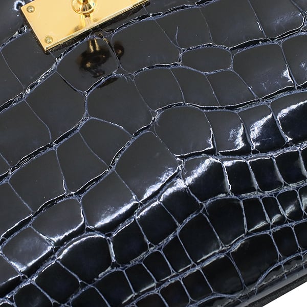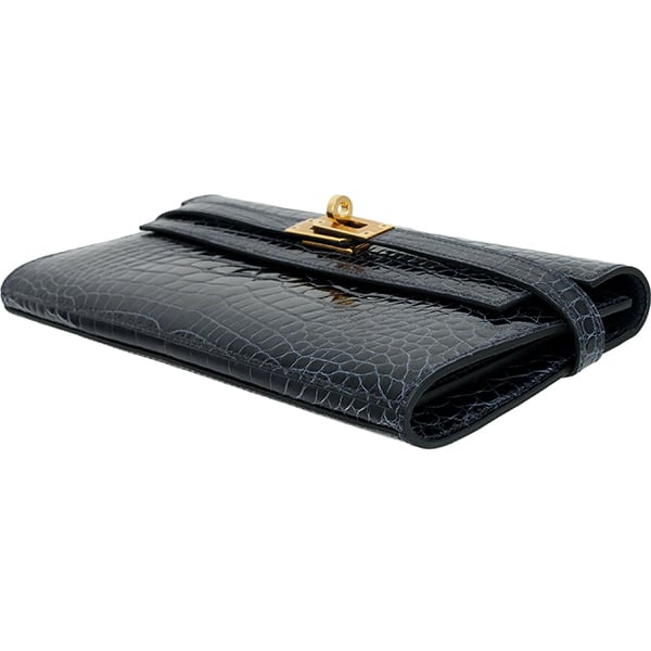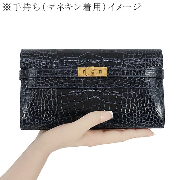 エルメスのアイコンバッグ「ケリー」の気品を受け継いだ、至高のロングウォレット。 素材には、ミシシッピワニの斑を美しく磨き上げた最高級クロコダイル「アリゲーター・リセ」を贅沢に使用。海の深淵を思わせる「ブルーマリン」に、華やかなゴールド金具が調和する、圧倒的な存在感を放つ逸品です。