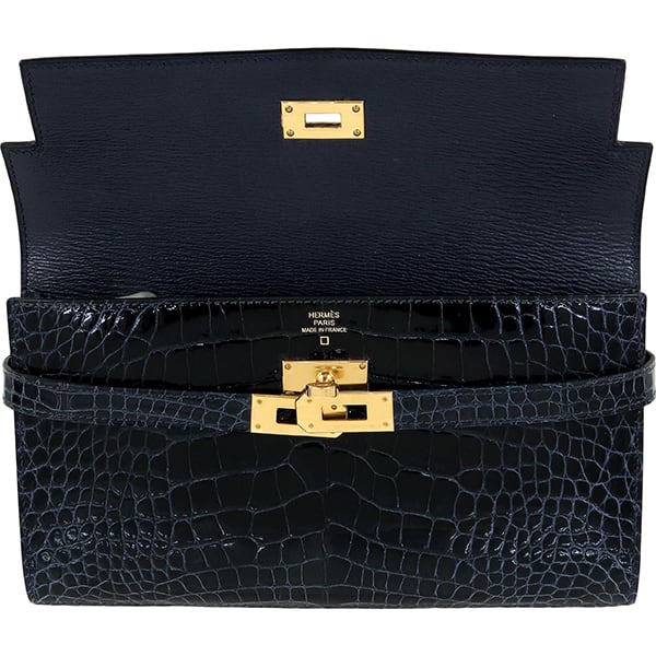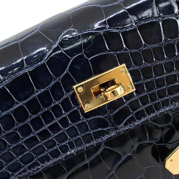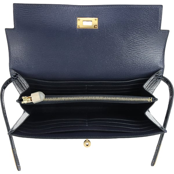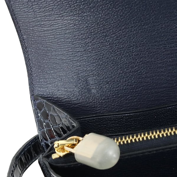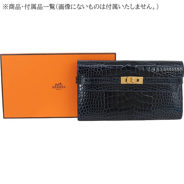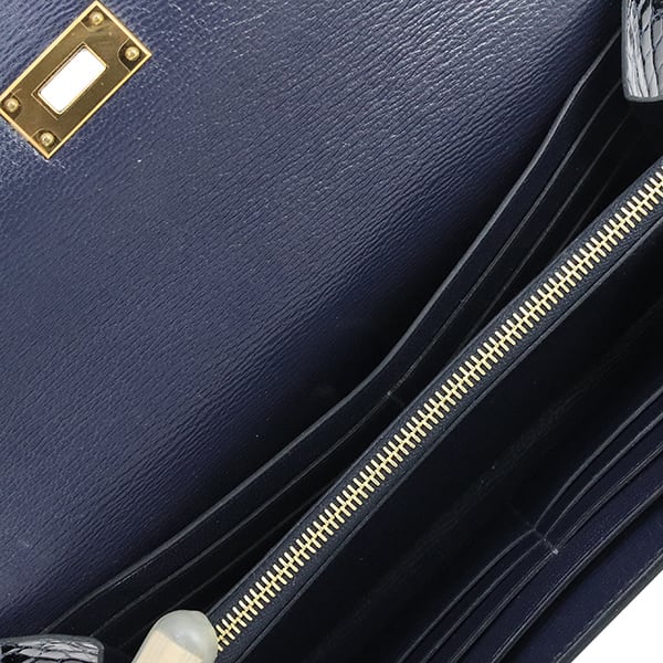 Used HERMES エルメス 長財布 ケリーウォレット ロング アリゲーター リセ ブルーマリン ゴールド金具 C刻印 超美品