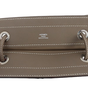 キャンバス素材のカジュアルな印象とは一線を画し、こちらは「ヴォースイフト」を贅沢に使用したオールレザー仕様。吸い付くような滑らかな質感と、エルメスを象徴する一番人気のカラー「エトゥープ」が合わさり、格別の気品を放ちます。