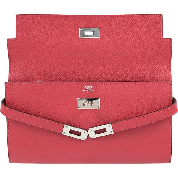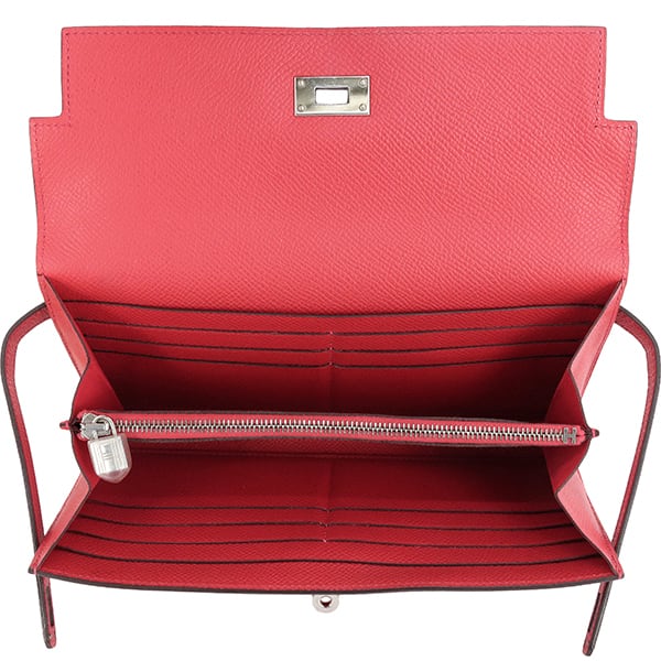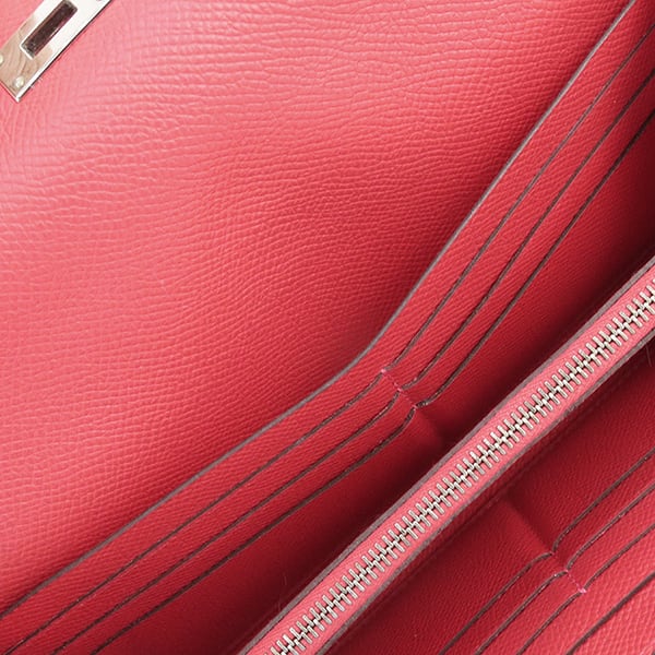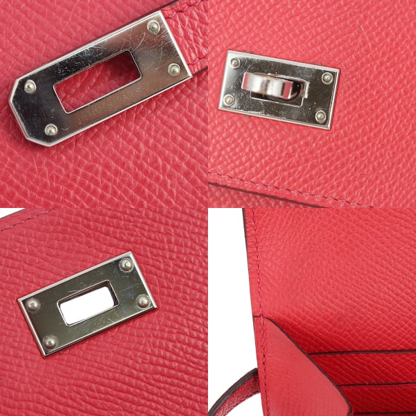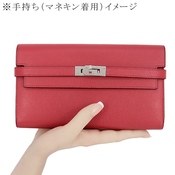 Used HERMES エルメス 長財布 ケリーウォレット ロング ヴォーエプソン ブーゲンビリア シルバー金具 C刻印 中古美品