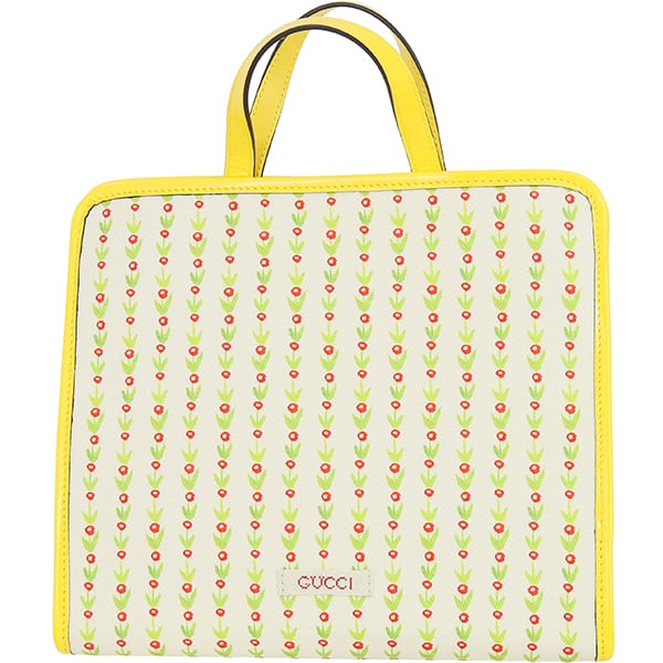 Unused GUCCI グッチ ハンドバッグ ヒグチユウコ コラボ チルドレンズ 花柄 キャンバス 605614 イエロー パテントレザー 未使用