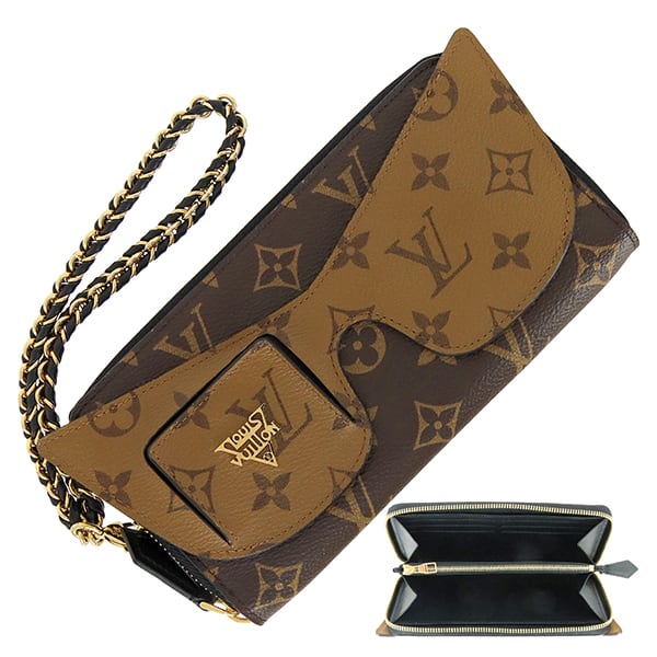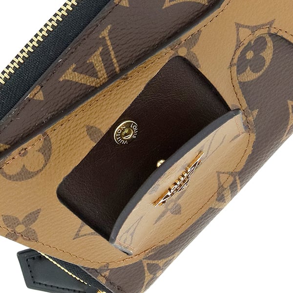 最大の特徴は、フロントに配されたキャッツアイスタイルのサングラスモチーフ。遊び心あふれるデザインに加え、実際にサングラスホルダーとしての機能も備えた独創的な仕上がりです。コントラストが美しいモノグラムとモノグラム・リバースの組み合わせが、モダンで洗練された印象を際立たせます。