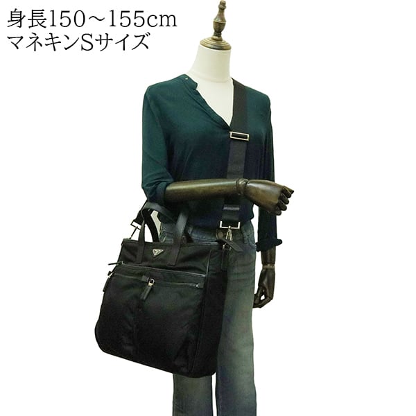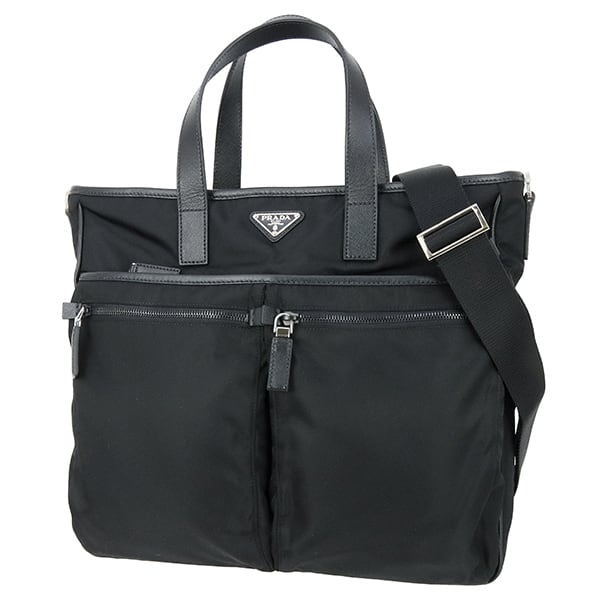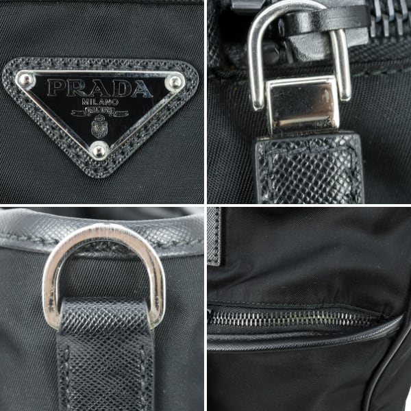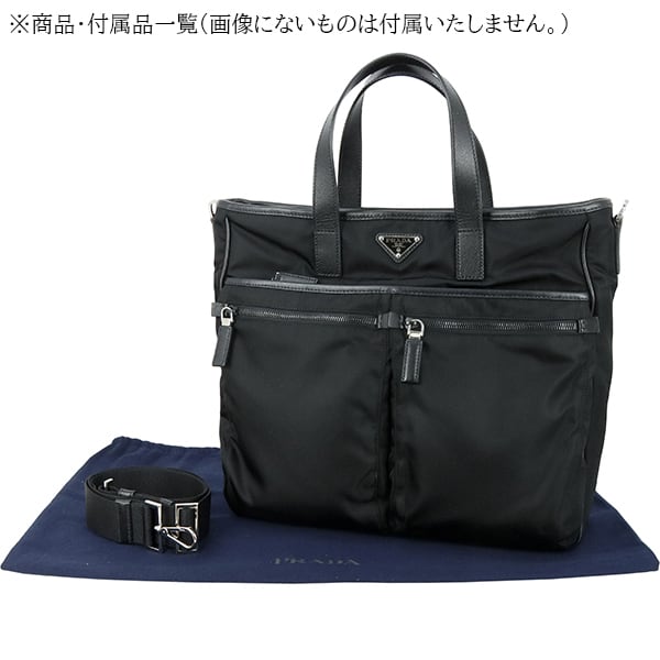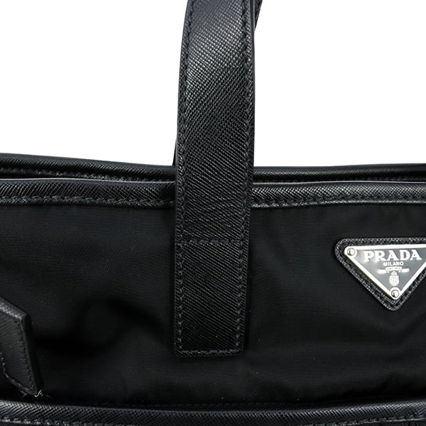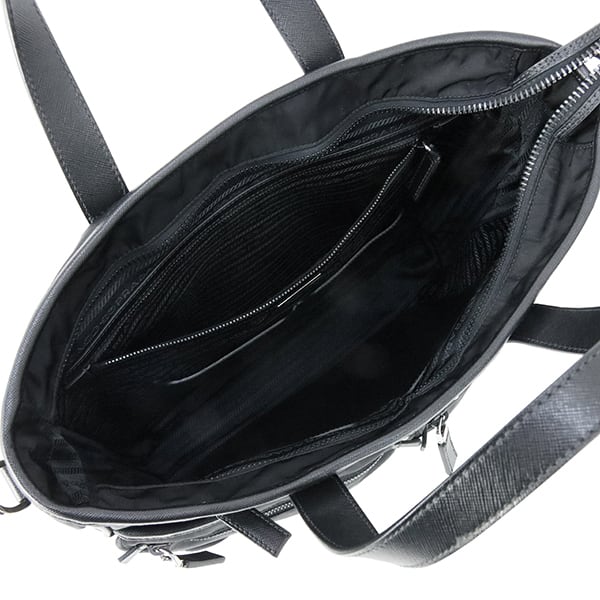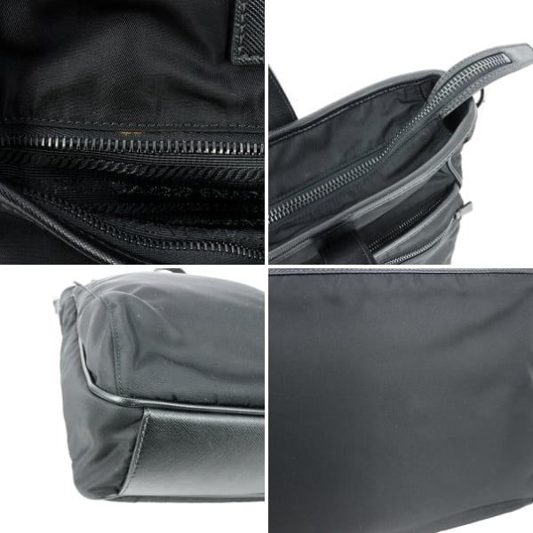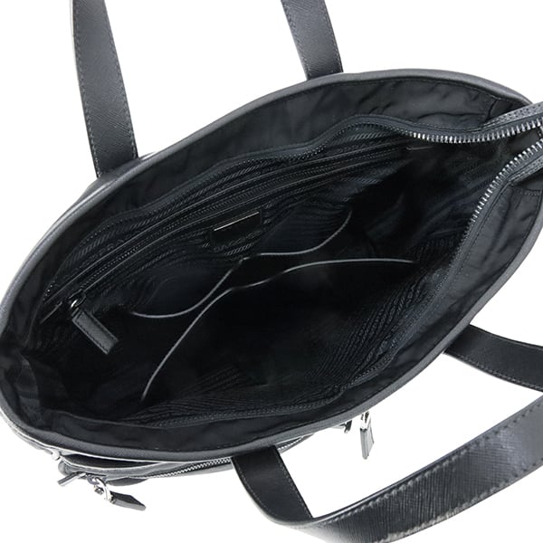 Used PRADA プラダ 2WAYトートバッグ サフィアーノレザー ナイロン ブラック 黒 シルバー金具 VA0860 ショルダーバッグ 斜め掛け 中古美品