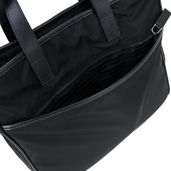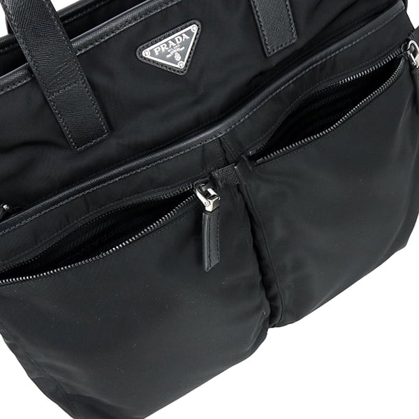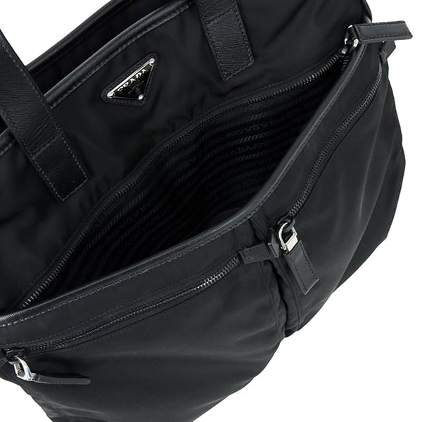 最大の特徴は、内外に配置された豊富なファスナーポケット。小物を整理して収納できる実用性の高さは、多忙な日常をサポートする心強いパートナーとなります。取り外し可能なショルダーストラップにより、手持ちのトートスタイルから軽快な斜め掛けスタイルまで、シーンに合わせた自由なスタイリングが可能。汎用性とモダンな魅力がバランス良く共存した、プラダの真骨頂とも言える逸品です。