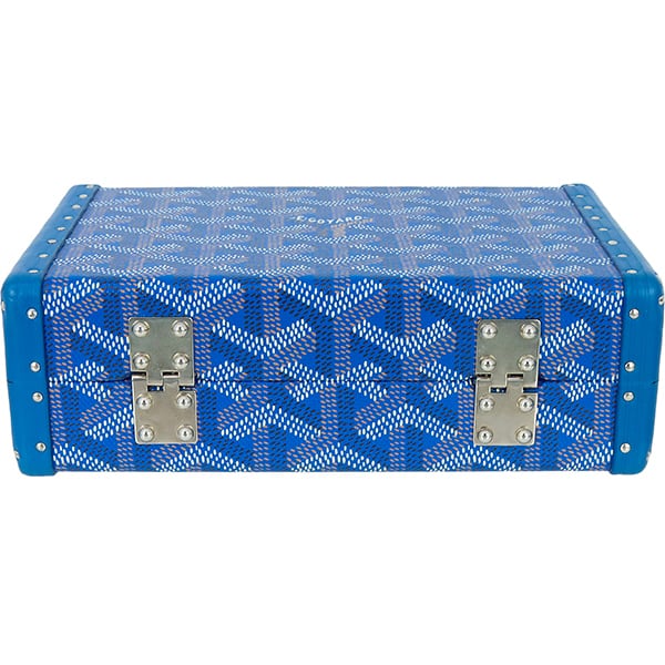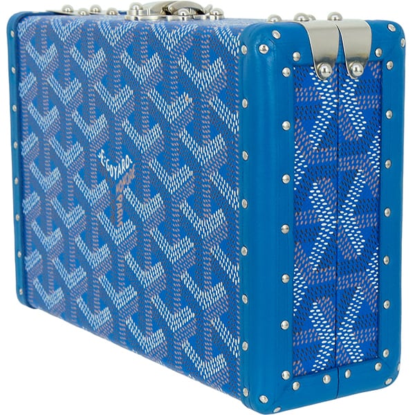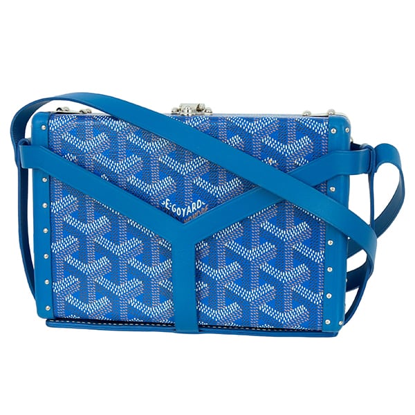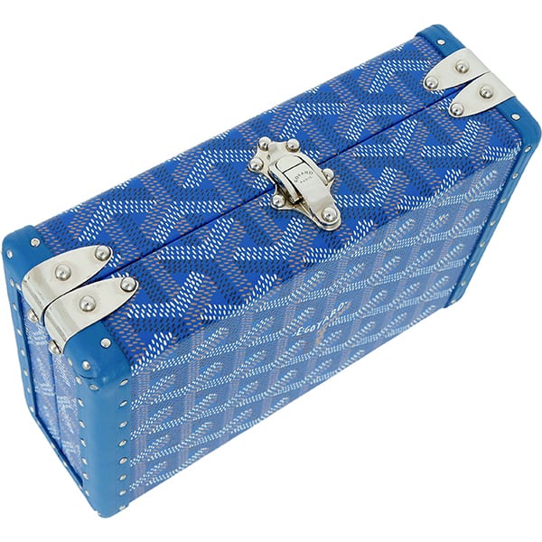 Used GOYARD ゴヤール ミノディエール トランクバッグ ゴヤールディン ブルー シルバー金具 ショルダーバッグ クラッチバッグ 2WAY 超美品