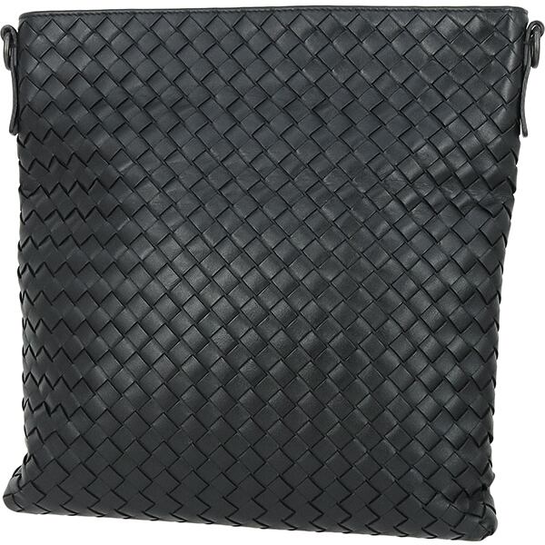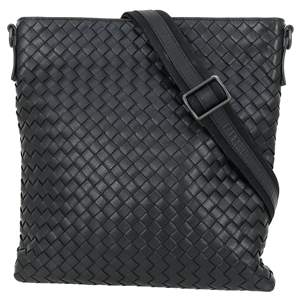 Used BOTTEGA VENETA ボッテガヴェネタ ショルダーバッグ イントレチャート ブラック ガンメタル金具 172736 斜め掛け 編み込み 中古良品