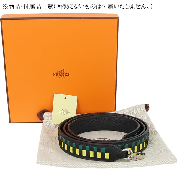 Used HERMES エルメス バンドリエール トレサージュ ドゥ キュイール 25mm ヴォーエプソン ノワール ライム マラカイト A刻印 ショルダーストラップ 超美品