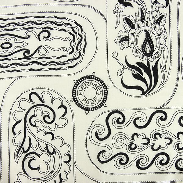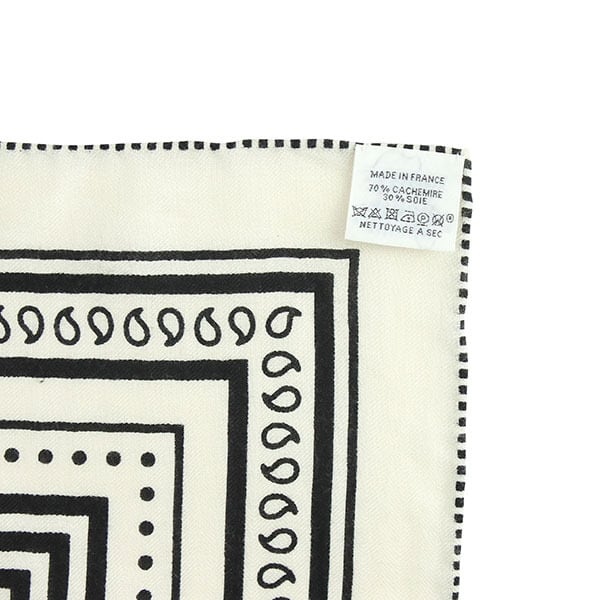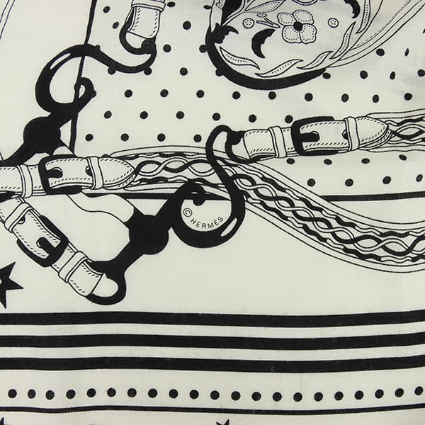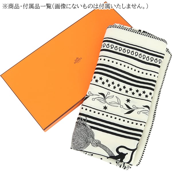 Used HERMES エルメス カレジェアン 140 アマゾンの祭典 バンダナ カシミヤ シルク ホワイト ブラック ストール ショール 中古美品