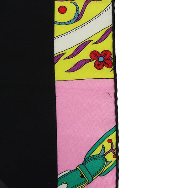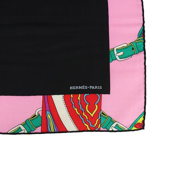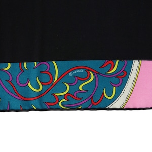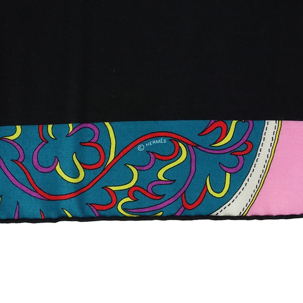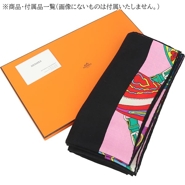 Used HERMES カレジェアン 140 アマゾンの祭典 アンカドレ ブラック ローズ ルージュ カシミヤ シルク H243606S 02 ショール ストール 中古美品