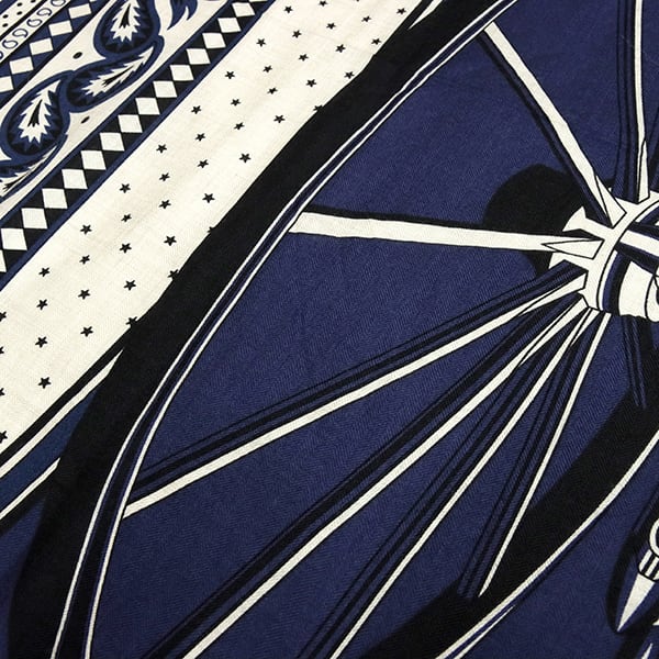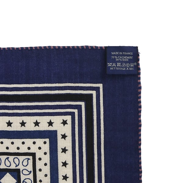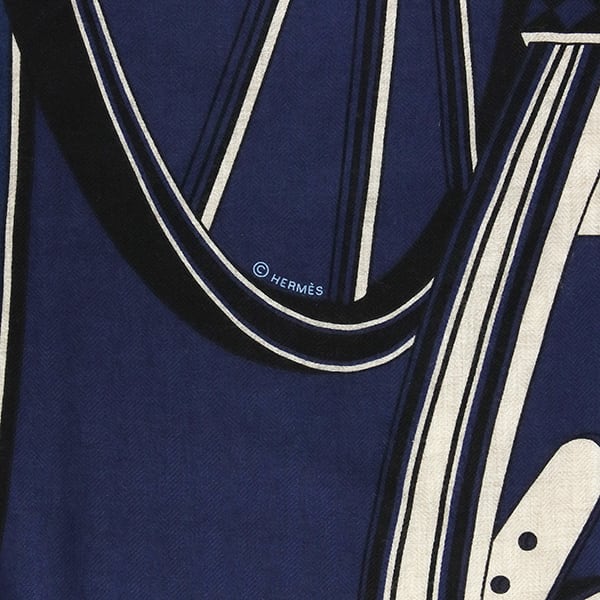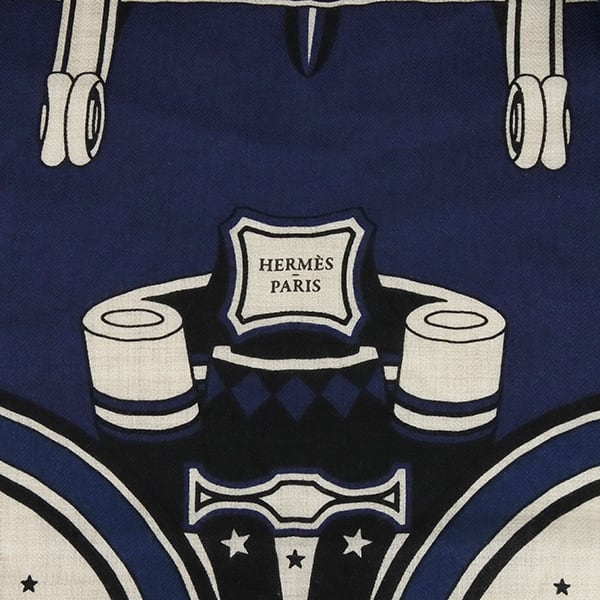 Used HERMES エルメス ストール カレジェアン 140 四輪馬車の車輪 カシミアシルク ネイビー ベージュ ブラック マリン カシシル ショール 大判 中古美品