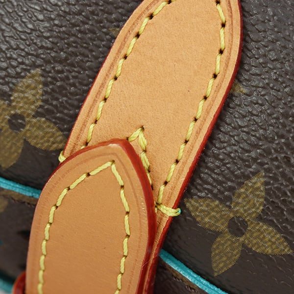 モノグラム・キャンバスに繊細なパーフォレーション(穴あき)を施すことで、内側の鮮やかな「テュルコワーズ(ターコイズ)」が美しく透けて見える、エレガントかつ遊び心溢れるデザイン。中央を飾るパドロック(南京錠)モチーフの金具が、全体にさらなる高級感を添えています。
