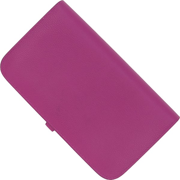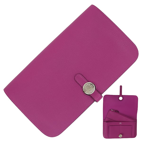 Used HERMES エルメス 長財布 ドゴン デュオ ローズパープル ヴォーエヴァーカラー ドゴンGM シルバー金具 ピンク パープル レザー 中古美品