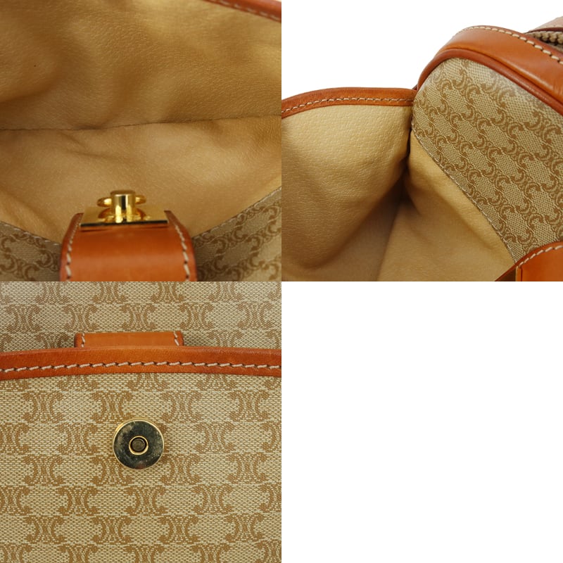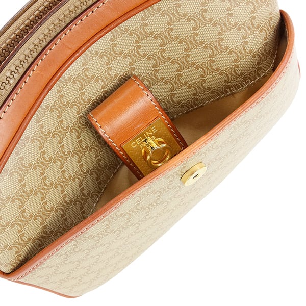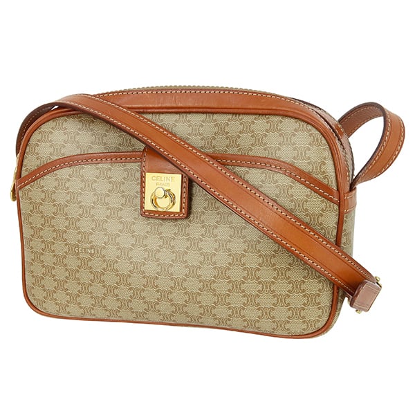 Vintage CELINE セリーヌ ショルダーバッグ マカダム ベージュ ブラウン CELINE 斜めがけ ヴィンテージ ゴールド金具 ロゴ PVC レザー カバン オールドセリーヌ 中古美品
