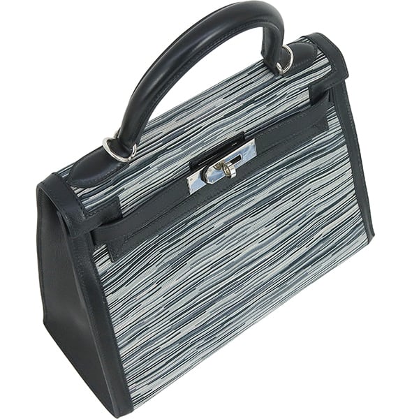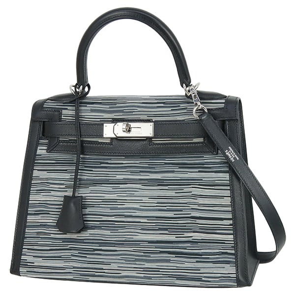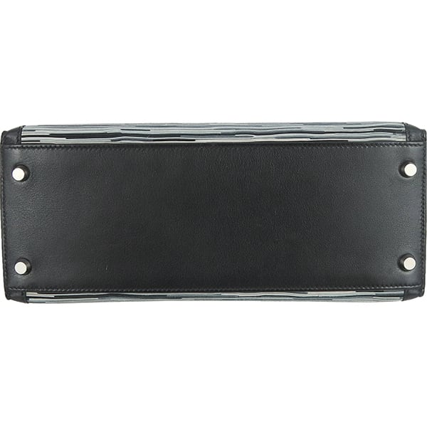 Used HERMES エルメス ケリー28 外縫い ヴィブラート ボックスカーフ グレー ブラック シルバー金具 ショルダーバッグ ハンドバッグ 超美品