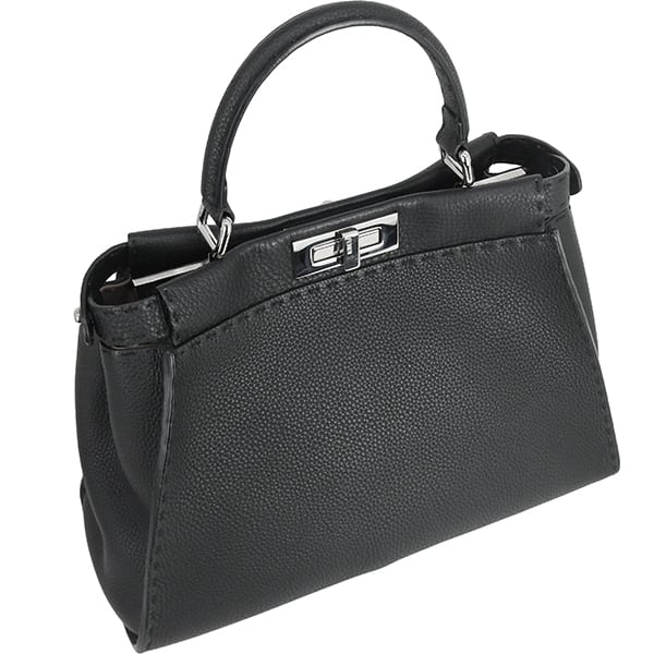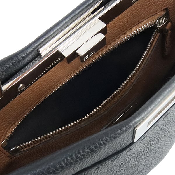 Used FENDI フェンディ ピーカブー アイコニック ミディアム セレリア ブラック ブラウン シルバー金具 8BN290 ハンドバッグ ショルダーバッグ 超美品