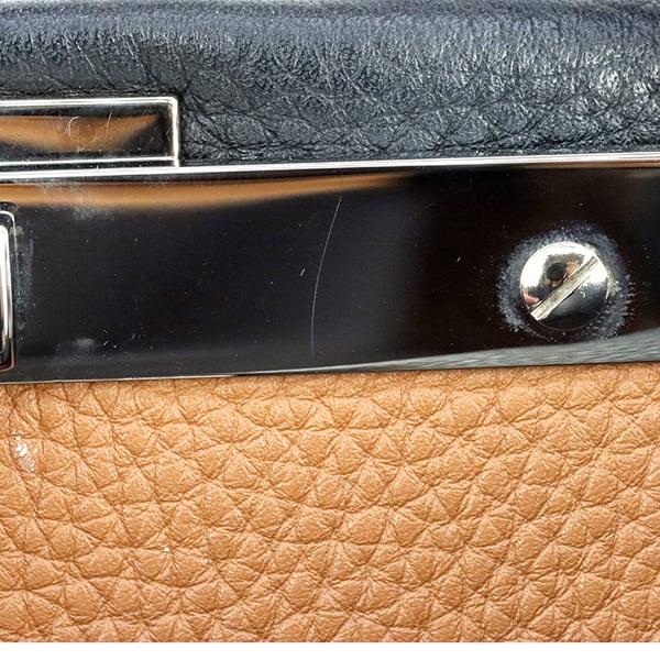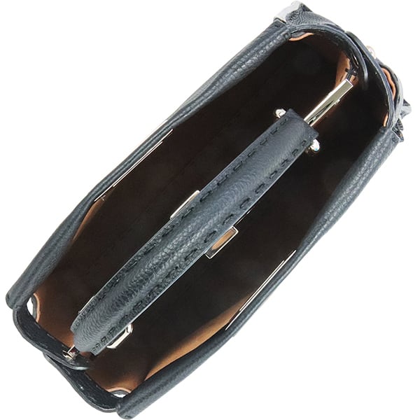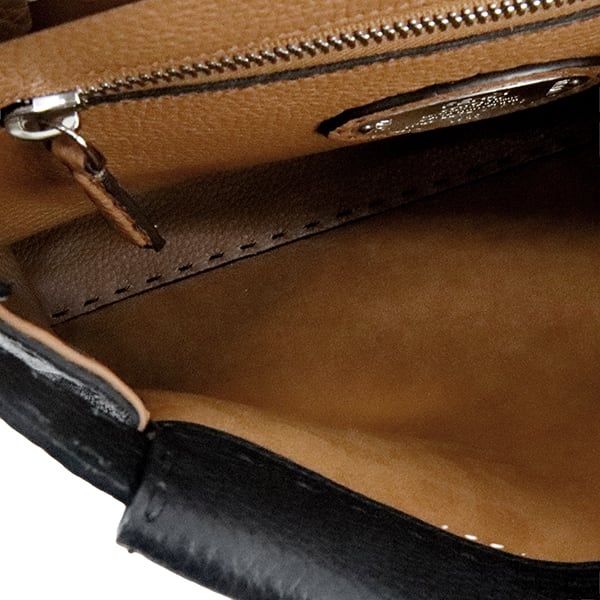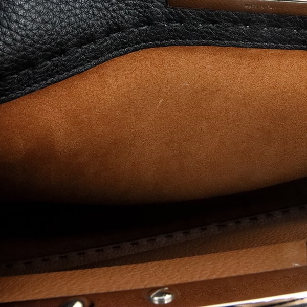 使用されている「クオイオローマ」は、驚くほど柔らかくしなやかな最高級カーフレザー。丁寧に施されたハンドステッチが、洗練された大人の余裕を醸し出します。外側のシックなブラックに対し、バッグを開けた際に覗く内側のブラウンが絶妙なコントラストを描き、ピーカブー(いないいないばあ)の名の通り、遊び心溢れる表情を楽しめます。