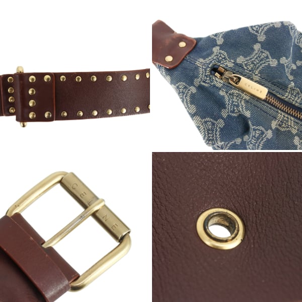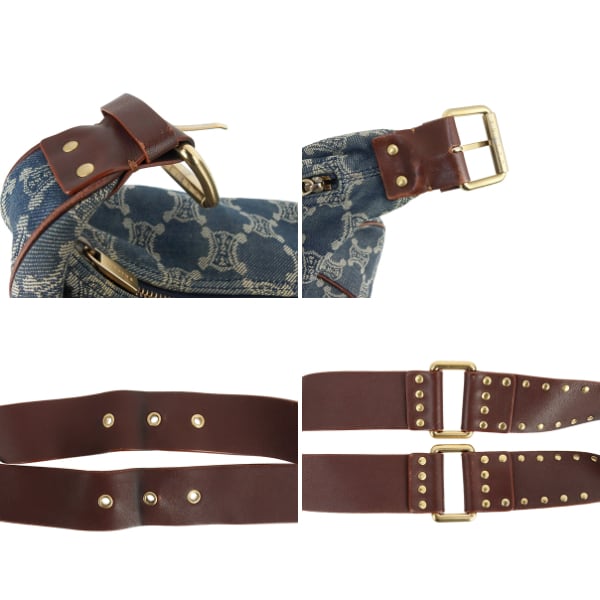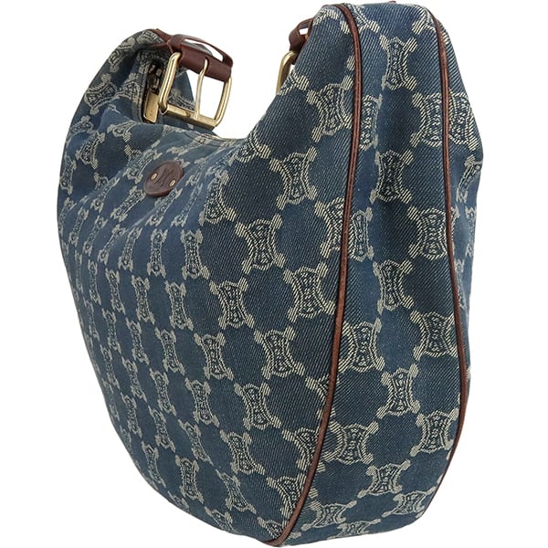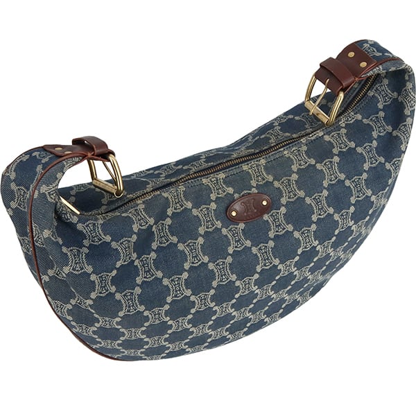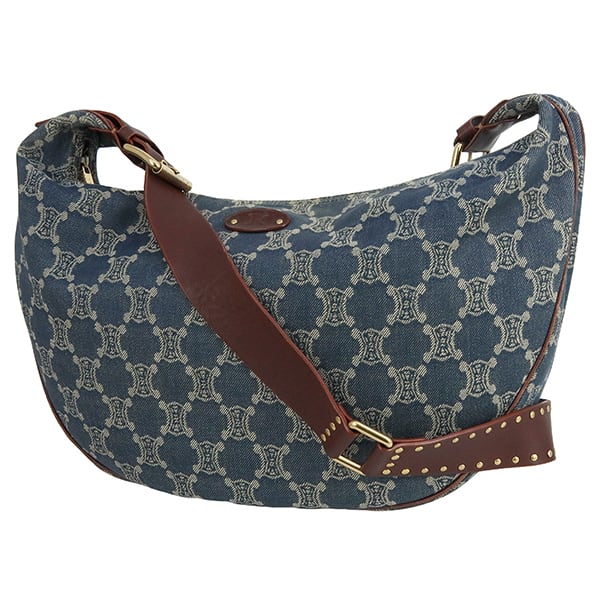 Used CELINE セリーヌ ショルダーバッグ マカダム デニムキャンバス ブルー ブラウン ゴールド金具 ハンドバッグ 2WAY 中古良品