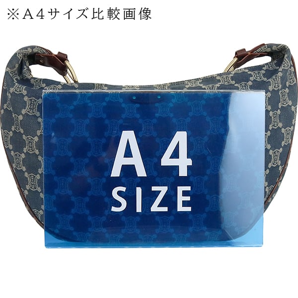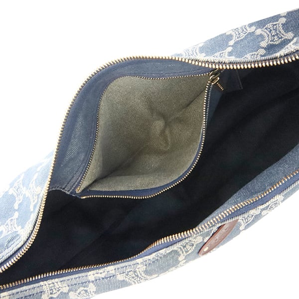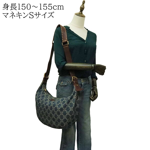カジュアルなデニム素材に、ブラウンレザーのトリミングとゴールド金具を組み合わせることで、オールドセリーヌらしい上品さとヴィンテージ感を巧みに融合させています。中央が緩やかにシェイプされた三日月型のフォルムは、体に優しくフィットし、斜めがけスタイルでもスマートなシルエットを保ちます。
