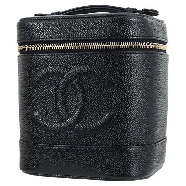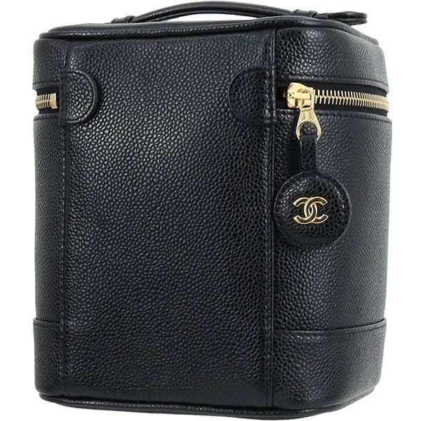 Unused CHANEL シャネル バニティバッグ ココマーク キャビアスキン レザー ブラック ゴールド金具 A01998