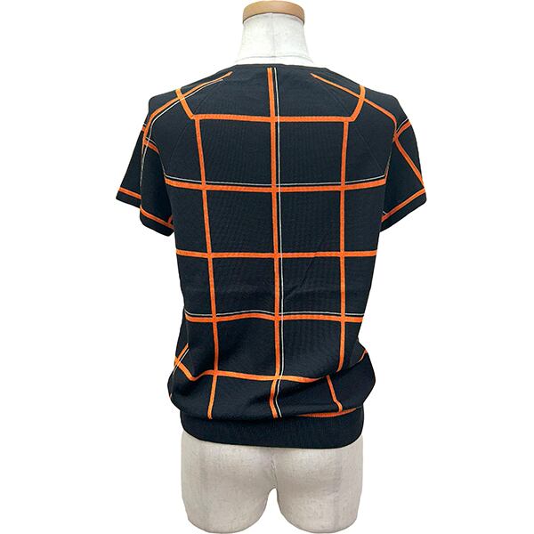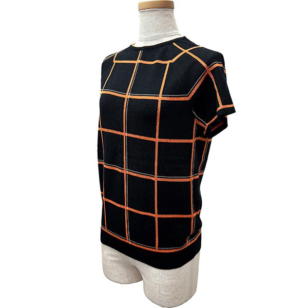 Used HERMES エルメス 半袖ニット チェック 36サイズ レディース ヴァージンウール シルク ブラック オレンジ