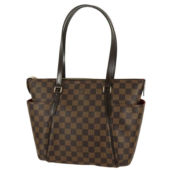 2501 【中古】 ルイヴィトン トータリーPM ダミエ ブラウン レッド ゴールド金具 女性 婦人 鞄 手持ち 肩掛け 収納 大容量 チェック柄 市松模様 フォーマル 定番 人気 美品
